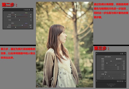 ·第二步/第三步:利用分离影调进一步加深暖色调的强度/增加暗角效果
