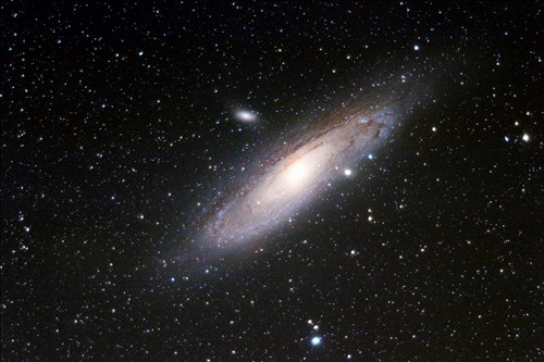 仙女座星系(M31)是一个螺旋星系,距离地球大约250万光年,位于仙女座的方向上,是人类肉眼可见最远的深空天体。完美的形态与美到极致的色彩,让M31成为天文摄影爱好者拍得最多的星系(虽然M31被拍到泛滥,但真正能拍好的并不多),仙女座也因M31而成为最著名的星座之一。