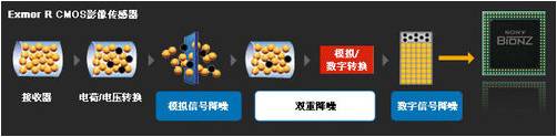 此外,索尼的A/D转换功能可在传感器内部而不是在外部将光信号转换为数字信号,从而在转换前和转换后都运用了降噪功能(双重降噪)。这样有助于拍摄出色画质、低噪点的影像。与Super CCD 的“双重曝光控制”(通过控制不同的曝光时间以实现不同的感光度)技术相比,Exmor R CMOS在暗光条件下的低噪点优势更为明显。
