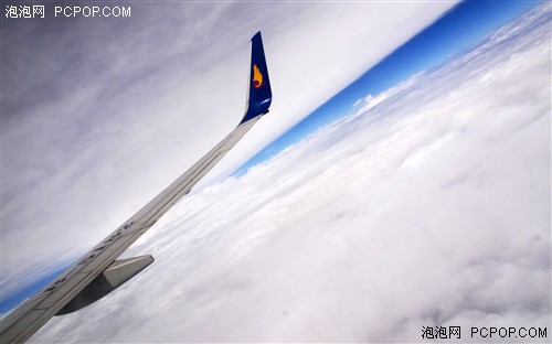 如果你不想拍到飞机翅膀怎么办?方法一是用中长焦避开机翼拍摄,但这很容易造成取景上的困难。一劳永逸的办法是买到靠前的座位,这样你想拍到机翼都难了,但这需要点运气。其实很多时候把把机翼和蓝天放在一起拍摄也很有意思,并不一定要刻意去避免。