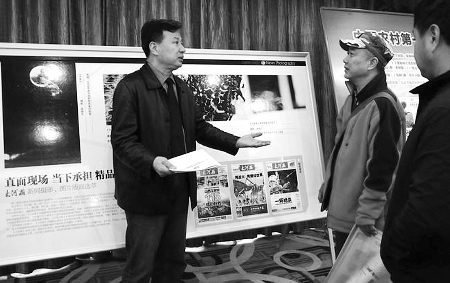 会议现场,本报的摄影作品展板得到了众多媒体人的好评。记者王灿文 记者陈晓东图