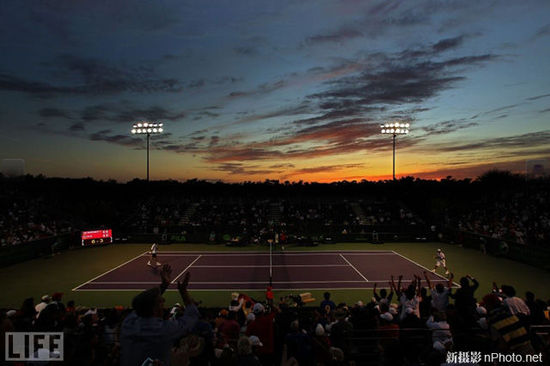 Al Bello在佛罗里达的一场网球赛中拍下这张照片。“摄影师所在的位置,刚好位于球场中央。边线、球员及光线都形成完美的对称。”Stalman说道?!傲硗?,我特别喜欢的地方在于,照片中体育场上方的天空很容易被裁掉,以强调球场内的画面,但是摄影师没有这么做。极具戏剧化的云层增强了场内对抗的气氛。”