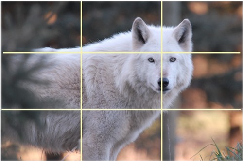 许多人都喜欢把要拍摄的人或物放在画面的中心,要记住这都是初级者/菜鸟的做法,实践证明,当画面主体处在整个画面的三分之一处,即画面偏左或偏右的位置时是最合适的。正像照片中所拍摄的狼一样,狼头恰好处在画面三分之一处。