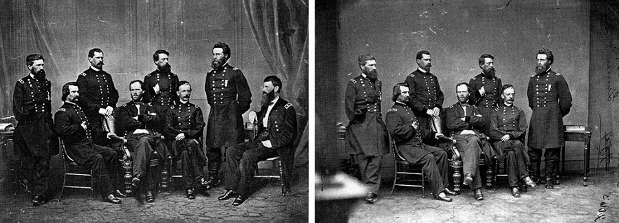 左图中,美国内战时北方的谢尔曼将军被加到了右侧的真实照片中。
