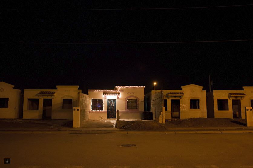 一户人家装饰了他们的房屋。因为失业和暴力事件,很多人都遗弃了房子逃离去别的城市。图上这一地区几乎都受锡那罗亚犯罪集团控制。