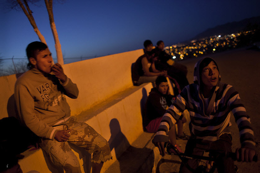 Los Novenos吸过大麻后极其兴奋,在他家附近的球场上吹涂料稀释剂。在华雷斯,最易受伤害的群体是“Los Ninis” 的青年男女,他们的名字来源于“NI estudian,NI trabajan”(那些既不工作也不学习)。