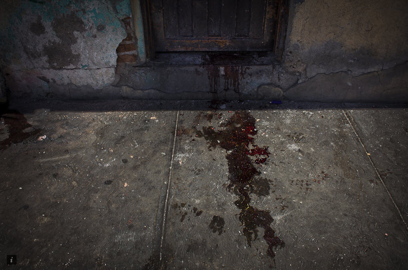 房屋门口台阶上仍残留着三名被害男子的血迹。