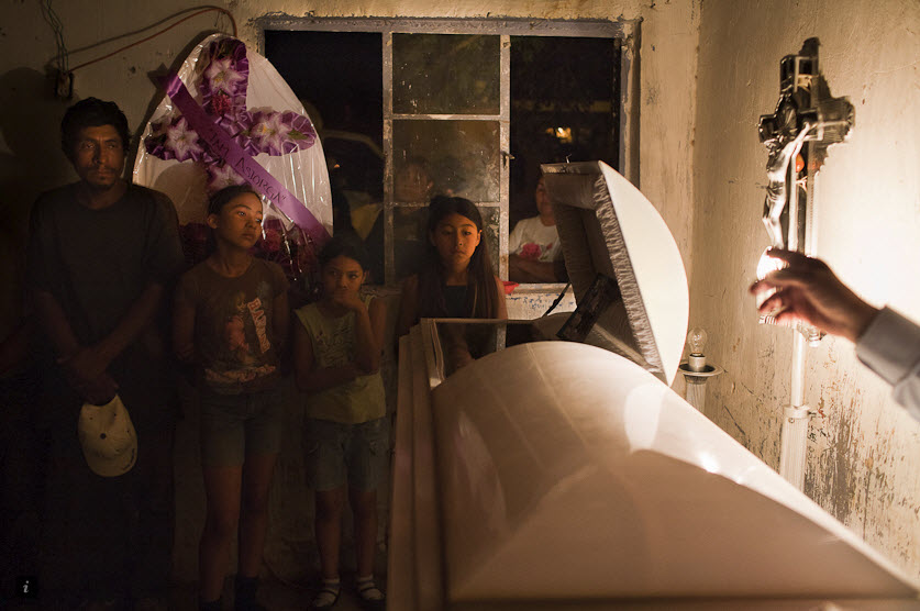 家人和朋友围在15岁男孩的尸体前,这名男孩被美国边境巡逻员击毙。家人否认男孩参与非法活动。但美国当局和他的同学都指认男孩参与偷渡犯罪活动。