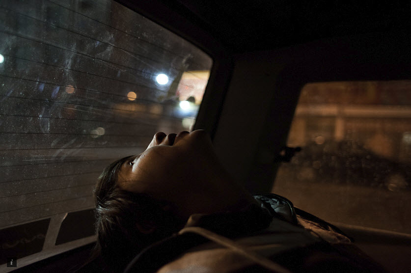 丹尼斯从后窗仰望路灯。她和家人因为家庭暴力离开墨西哥城来到华雷斯。现在因这里的暴力事件打算搬走。