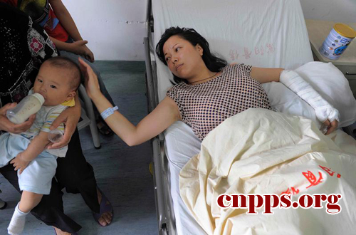 ????2011年7月3日上午,在富阳市中医骨伤医院,躺在病床上的“最美妈妈”吴菊萍脸上露出一丝愧疚。吴菊萍是一名七个月大孩子的母亲,因为手伤不能喂奶,儿子只能喝奶粉。