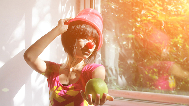 技巧:忙于嘲笑人生,不如做个小丑,最平凡却最多快乐,用暗喻的手法秀出你的人生态度。造型有点雷,一笑过后却真的很快乐。这样的图片,如何拍摄不是重点,因为她的快乐你只需要记录下来就够了。