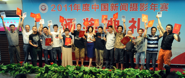 ????8月11日,2011年度中国新闻摄影比赛颁奖典礼在武汉隆重举行,金奖、年度杰出摄影记者和年度杰出图片编辑奖获得者出席颁奖典礼,并向他们颁发奖牌、证书和奖金。