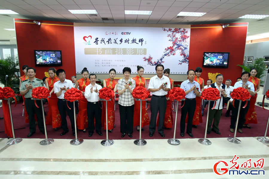 ????此次“寻找最美乡村教师”书画摄影展是2012“寻找最美乡村教师”大型系列公益活动的子活动之一,分为书画展和摄影展两个部分。其中,书画展作品由主办方向知名书画家邀约而来,共展出一百四十余幅。被誉为“中国漫画界常青树”的方成老先生专门为此次画展创作了漫画《园丁赞》;著名书法家李铎将军不仅题写了本次活动“寻找最美乡村教师”的主题词,还题写了“授业解惑”四个苍劲有力的大字;国家行政学院副院长周文彰题写了自作诗:“执鞭陋室作人梯,洒汗讲坛发渐稀。偏远乡村才辈出,蚕丝蜡炬美如诗。”此外,沈鹏、冯远、张海等书画大家也纷纷为本次展览题字作画。