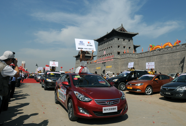 ????各种品牌汽车绕古城巡游,气势磅礴。 王呈选摄影报道