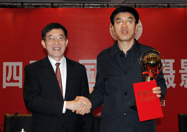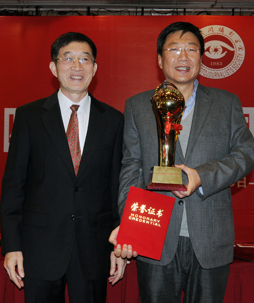 中国新闻摄影学会主席于宁向为本届年会做出重要贡献的山西省新闻摄影学会颁发优秀组织奖。