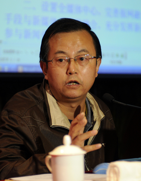 山西日报报业集团副社长、山西省新闻摄影学会会长张宁在主持第十四届全国新闻摄影理论年会讲话。