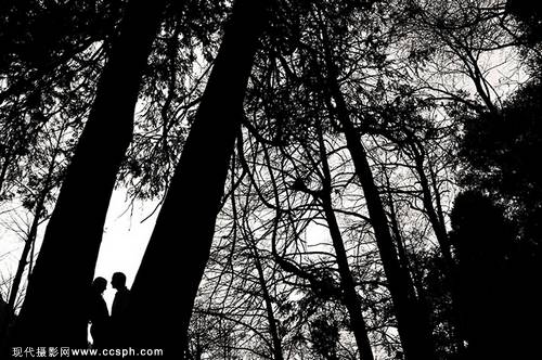 上图这张照片,两棵树成为了很强的引导线,让人能够聚焦于人物身上,而右方则布满大量的花纹做陪衬,再加上三分法的运用,让照片更容易被阅读。