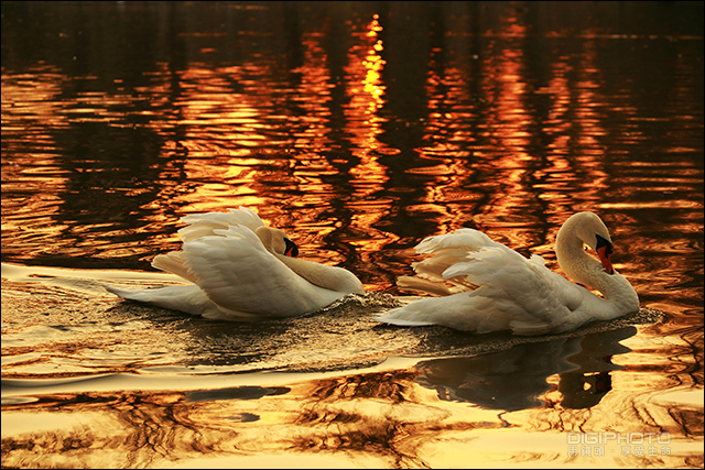 ▲光圈优先,F5.6,1/320秒,ISO 400,焦距100mm,曝光补偿 –0.67EV将白平衡调整为选择色温模式,设定8800K的色温,会明显增强暖调色彩,让水面和天鹅呈现出浓郁的金黄色,更好地表现黄昏的氛围。
