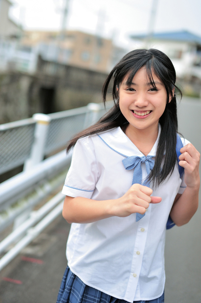 这张照片是我在被摄者蹦蹦跳跳地接近镜头的过程中拍摄的。在这张照片中,女孩表现出了她所独有的精力充沛、充满活力的感觉。在这张照片的拍摄中,相比于女孩向前跑的速度,她的上下移动才是更需要注意的问题。