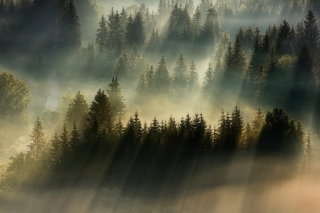 来自波兰的摄影师Boguslaw Strempel就在波兰与捷克附近的山林里,找到许多美丽的晨间雾景,利用现有的气候条件,更改相机的设定,耐心等候,早起鸟儿就可遇见上帝,这些精彩的天显神迹摄影作品,就是最好的证明啦!