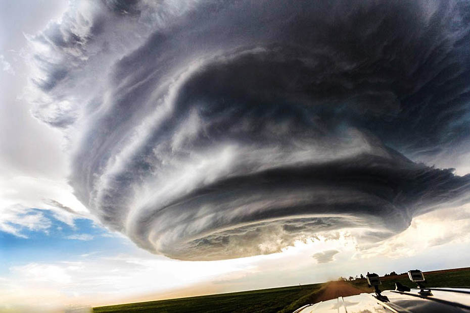 英国《每日邮电》9月11日在报道中描述了这样一幕:在辽阔的草原和寂静的公路上方,巨大的乌云层正在空中集结形成,仿佛一架太空飞船盘旋在大地的上方。世间的一切都在静候毁灭的序幕。这一幕就是超级雷雨胞形成时的景象?!睹咳沼实纭房堑囊蛔橥计?,清晰地展现了超级雷雨胞在美国“龙卷风走廊”(Tornado Alley)形成时的骇人景象。