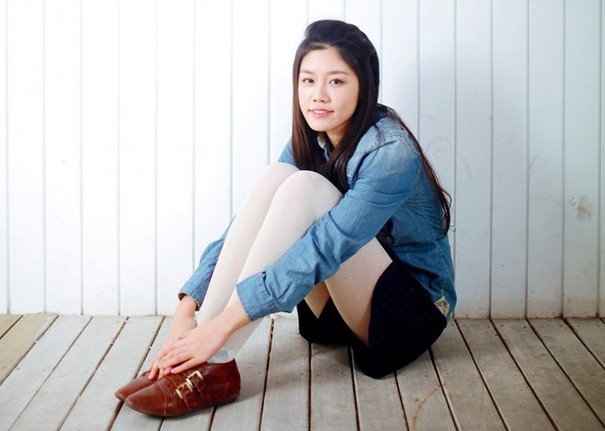 清新风格的坐姿会让女孩在直立上身的同时,脖子也一并挺直。这虽然能让身体直立但太过呆板。