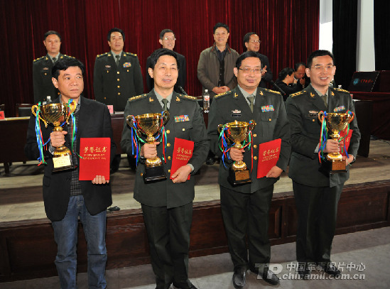 《军事记者》杂志、沈阳军区宣传部、沈阳军区联勤部、中视科华文化产业发展中心获证书、奖杯。赵佳庆摄