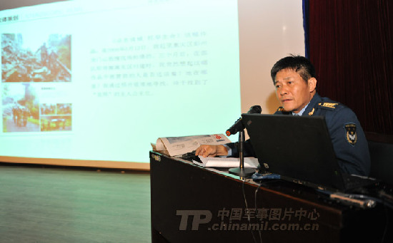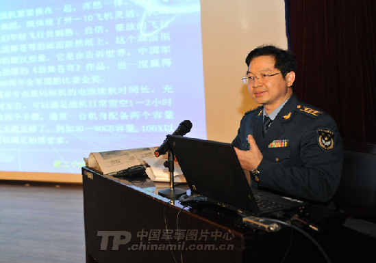 解放军报社高级编辑、总编室摄影组组长周朝荣发言:军事新闻摄影的状况与思考。赵佳庆摄