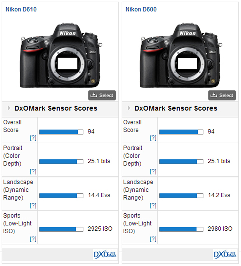 DxOMark实验室公布尼康D610传感器测试结果,综合得分94分,与上代机型D600相同,暂列DxOMark排行榜第3名。