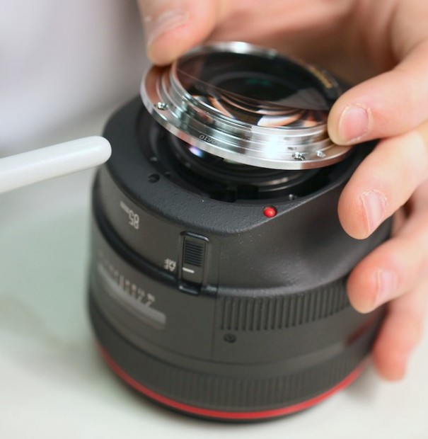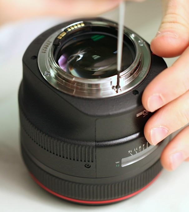 佳能85mm f/1.2后镜组清灰同样简单,但需要注意一些小细节。