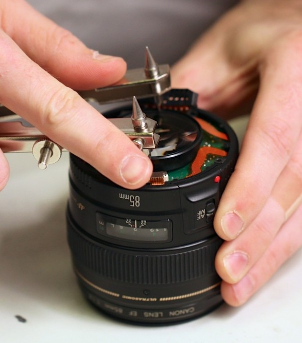 佳能EF 85mm f/1.8的清灰难度稍微有点大,不仅要借助二脚开扳手这样的专业工具,而且对拆镜者的技术提出了更高要求。