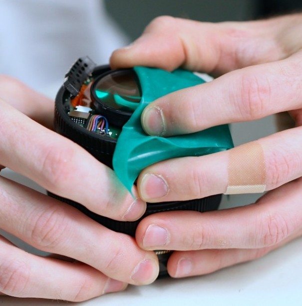 后镜片组松了之后,用镜头纸之类的物品将整个镜片组拧出。