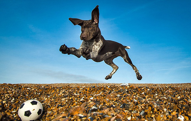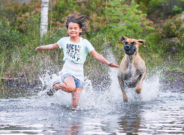 今年的总冠军的获得者Sjolstad所捕捉的一个小女孩与一只丹麦大猎犬一起从水中跑过,水花四溅的生动画面,便是“人类的最好朋友”组的胜出作品。