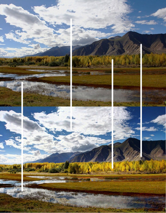 对于这张照片,我特意凸出了白云的形态与层次,增加了云在水中倒影的层次感,树林的色彩和高光感,以及山脊的光影感。