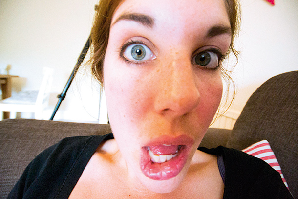 有时候,扮丑也是一种才艺,看腻了自己“正经八百”的自拍头像,那就来个搞怪Style吧!巧用你手上的广角镜头,甚至是鱼眼镜头,以手持拍摄的方法,将脸凑近镜头,使广角镜头成功地扭曲你的面容,达到“扮丑”的效果。(编按:鱼眼镜头的效果更明显,真的很丑?。?/p>