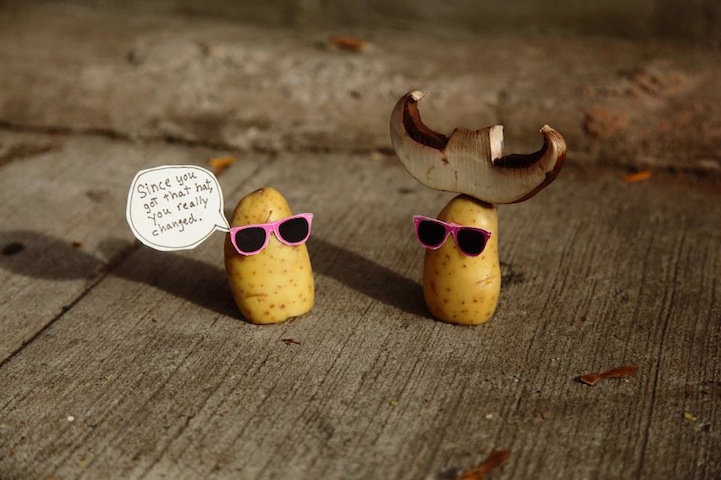艺术家Peter Pink为表达自己的艺术主张创造出了一批可爱小土豆,照片中的小土豆们个个戴着粉色眼镜,令人忍俊不禁。