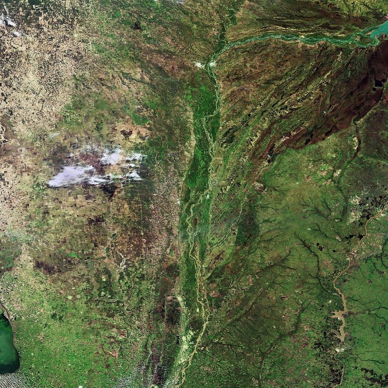 俄罗斯“大图网”发布了一组由欧洲航天局拍摄的地球照片,照片中的山河图景甚至像是玻璃上的蜡染图和霜冻景象,其上的特殊色调不禁让人再次感叹大自然惊人的美丽。