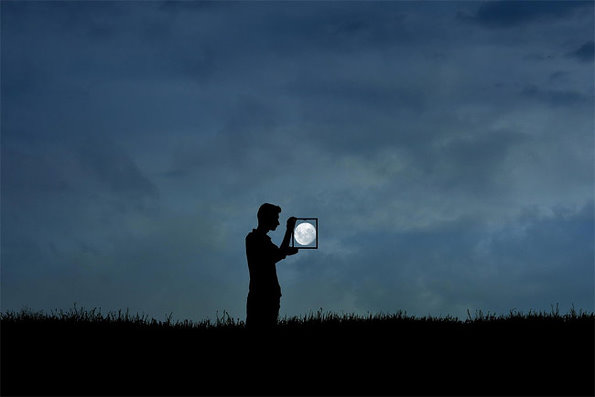 和月亮约会创意摄影作品