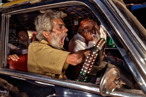 摄影师Dougie Wallace花了差不多一年的时间记录出租车里的司机和乘客们,这些出租车就像胶囊,里里外外包裹着印度人口最多的城市的无序和活力。