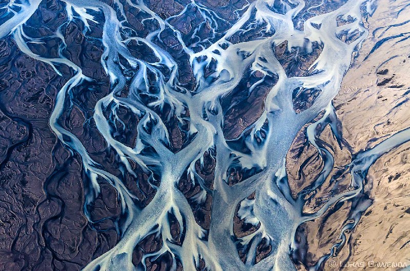 冰岛一直都是风光摄影师十分热衷的拍摄地,无论是它壮观的极光还是它天然的自然风光都是摄影师镜头下最美的画。而拍摄的人多了自然作品也不免雷同,为更好的让观者一睹冰岛的美,摄影师Lukas Gawenda从高空拍下了这个海岛的冰川,海岸线,瀑布,Lukas通过作品让观者从上帝的视角俯视这个我们所熟悉的地方,浓重的色彩,不规则的线条,好似一幅抽象画。