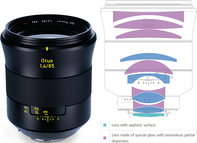 卡尔·蔡司正式发布Otus系列第二款新镜头Apo Planar T* 85mm f/1.4 ,采用9组11片光学结构,内含1片非球面镜片和6片异常低色散镜片,并加入浮动镜片设计。全金属镜筒,手动内对焦系统,9叶片光圈,可调范围f/1.4-16。