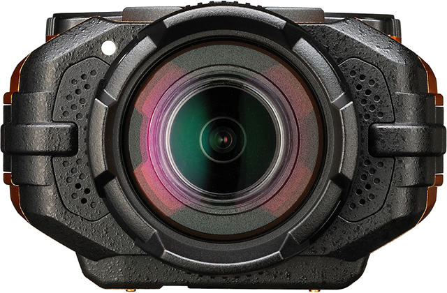 其外形也传承了WG系列户外运动理念的设计风格,由于体积小巧,配合各种配件可固定安装在手腕、头盔、滑板、车把等各类拍摄平台之上。该相机无需借助任何防水外壳即可在水下10m工作1小时,抗2m自由跌落,耐零下10℃,JIS6级防尘。