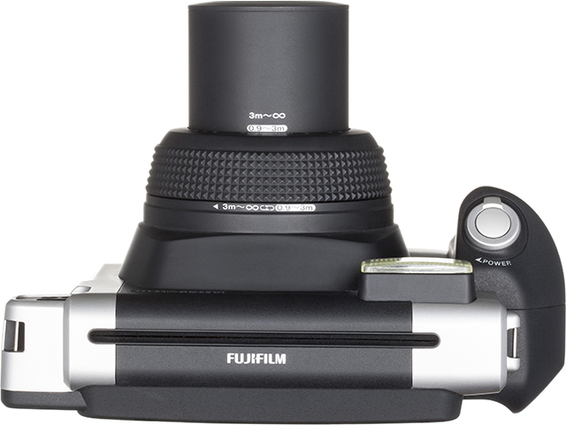 其实Instax Wide 300配置与目前Instax Wide 210基本相同,但简洁的机身线条和银黑色搭配让它看上去充满了科技感,且体积更加小巧。内置0.37倍光学取景器和闪光灯,搭配一枚95mm f/14镜头,两段式对焦档位,可分为“正常”和“风光”模式,正常模式合焦范围0.9-3m,风光则是3m-∞。相机使用宽幅相纸(62×99mm)成像,需4节AA电池供电。