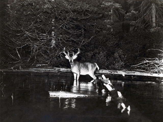 这是由George Shiras III拍摄,刊登在1906年7月号《国家地理》杂志的照片。这组照片是自1888年创刊以来首批生态摄影作品。除此以外,这也是早期少数使用闪光灯拍摄的作品之一。所以无论是对《国家地理》杂志还是摄影历史而言,都是很值得了解的一系列作品。