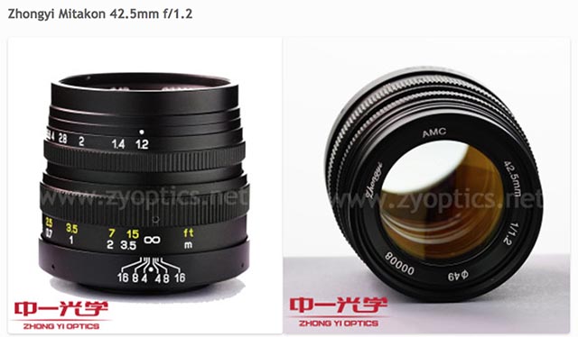 中一光学发布42.5/1.2、24/1.7无反镜头