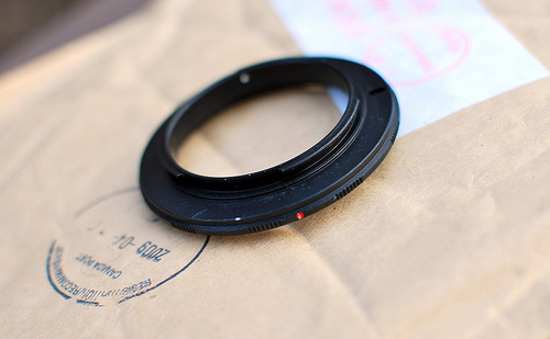 可以买一个反转接环(reverse ring adapter),把镜头倒转接合,并插上相机。一般来说,我们都会以标准镜作基准,因为通常以 50mm 的标准镜头来说,出来的放大比率会是 1 : 1,而焦距更短的镜头(如 35mm/28mm 等)的放大比率会更大。