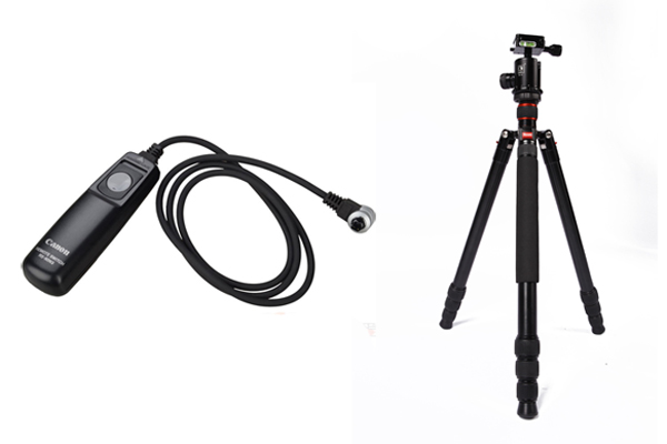 (步骤三) 带上三脚架、快门线和后备电池