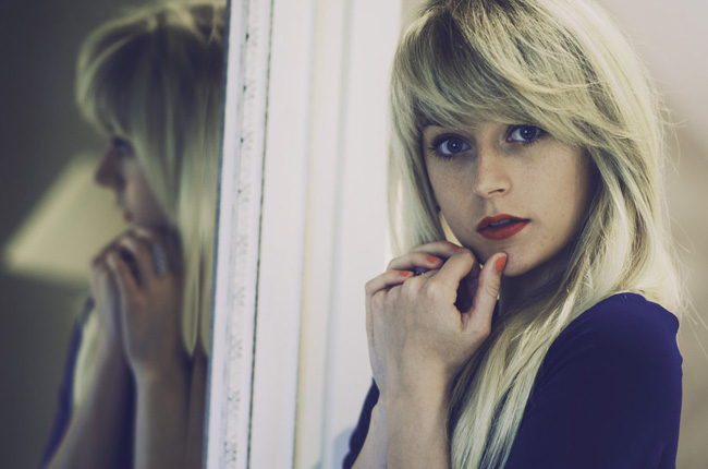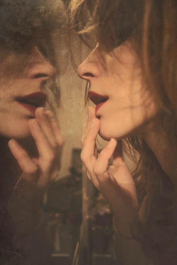 倒影技巧十分有趣,你可以善用玻璃、镜子、水面、金属等会反射光的物件,让模特的脸或是景物反映在相片上,影成一个对称的构图,也记得请模特不要望向镜头,这样相片会更有感觉呢!