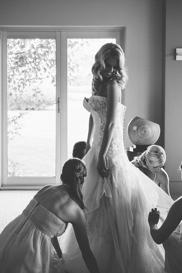 画面下方有伴娘围着你,为你整理裙摆和装饰,而你带着幸福的笑容回头看着伴娘们,还有什么画面比这个更棒的呢。