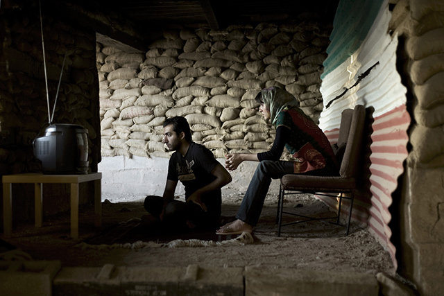 提起战争,我们总会将它与鲜血、恐怖、地域等词联系在一起。但在这个倡导和平共处的年代,战争仍然时有发生。生活在战争下的人们,就只能饱受战争带来的困扰,在恐惧和胆怯中生活。伊朗女摄影师Gohar Dashti的作品“Today's Life and War”通过构造虚拟的战争场景,展示了战争过后,一对夫妻仍然心有余悸,战争的阴影时时刻刻影响着他们的日常生活。
